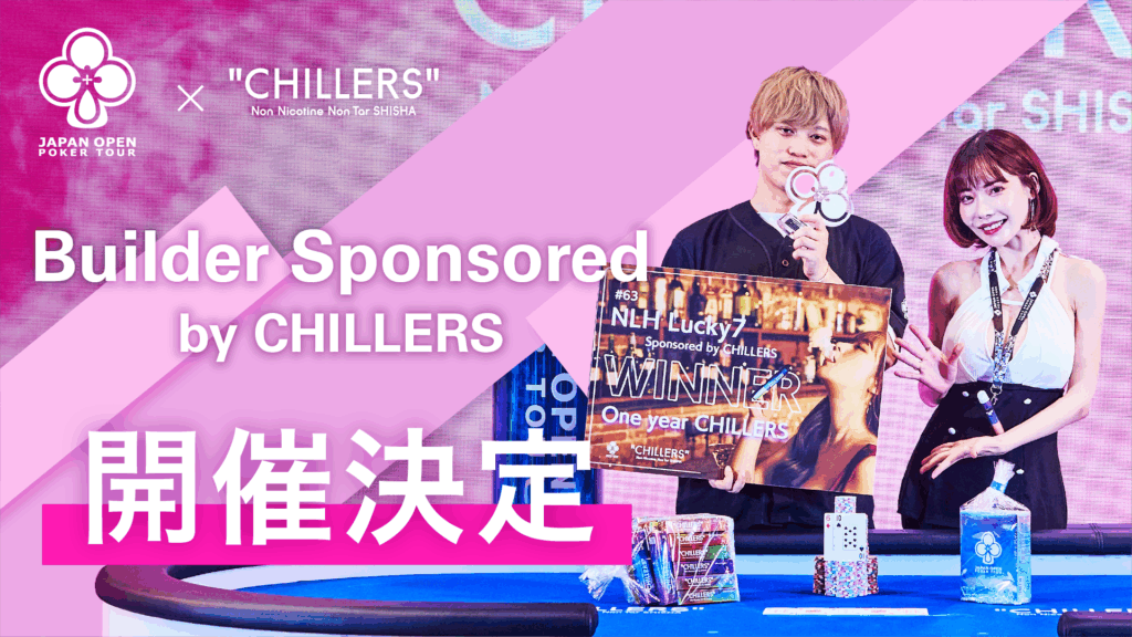 NLH Builder Sponsored by CHILLERSDate : 2025.07.19 (Sat.) 16:00Fee : ¥15,000