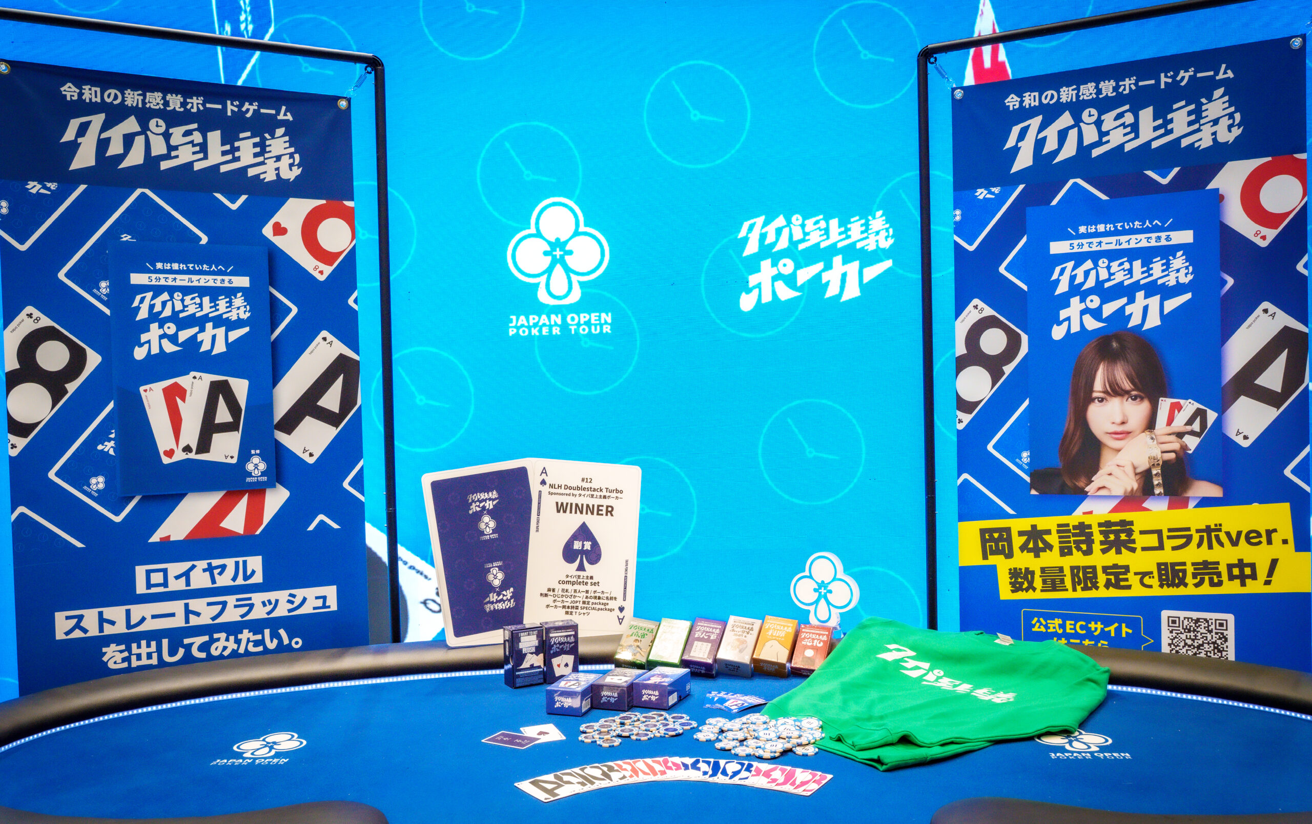 オリジナル限定Tシャツやポーカー JOPT限定パッケージ、ポーカー 岡本詩菜 SPECIALパッケージまで揃った、タイパ至上主義の世界観をまるごと体験できる特別なセットです。