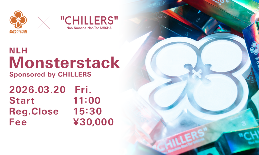 JOPT 2026 Osaka #01では、2026.03.20 11:00から「NLH Monsterstack Sponsored by CHILLERS」を開催!