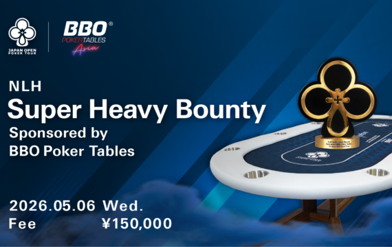 JOPT 2026 Gradn Final では、「BBO Poker Tables」とのコラボレーションによる特別トーナメント「NLH Super Heavy Bounty Sponsored BBO Poker Tables 」を開催いたします。