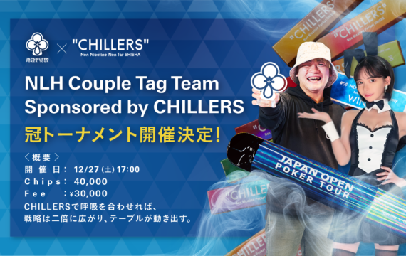 JOPT 2026 Tokyo #01 では、「CHILLERS」とのコラボレーションによる特別トーナメント「NLH Couple Tag Team Sponsored by CHILLERS」を開催いたします。
